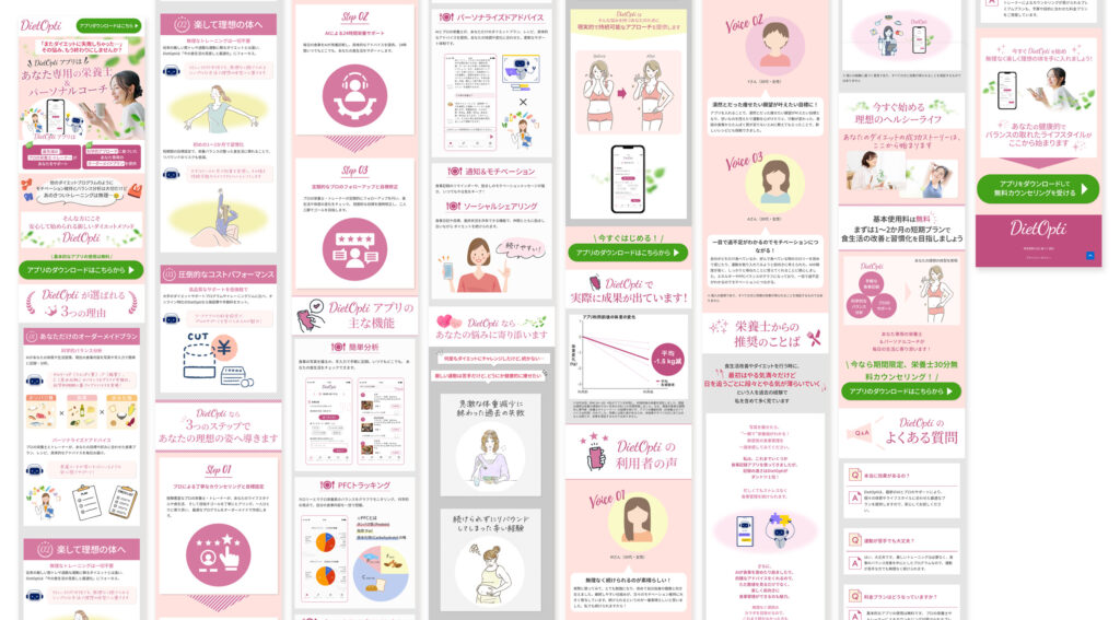30代女性向けのダイエットと健康的な食生活をサポートするアプリ・サービスの魅力を伝えるLPを担当。